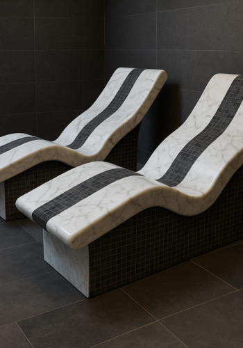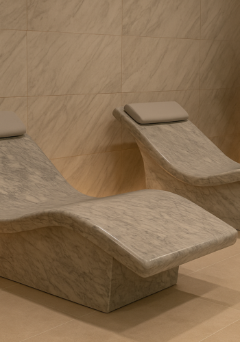 “Isıtmalı taş yataklar ve buhar odası oturma grupları doğal taşın sakinleştirici enerjisini modern ısı teknolojisi ile birleştirerek derin bir gevşeme ve lüks bir spa deneyimi sunar.” Modern wellness alanlarında, Türk hamamlarından lüks spa merkezlerine, masaj odalarından VIP bakım ünitelerine kadar geniş kullanım alanı bulunur.